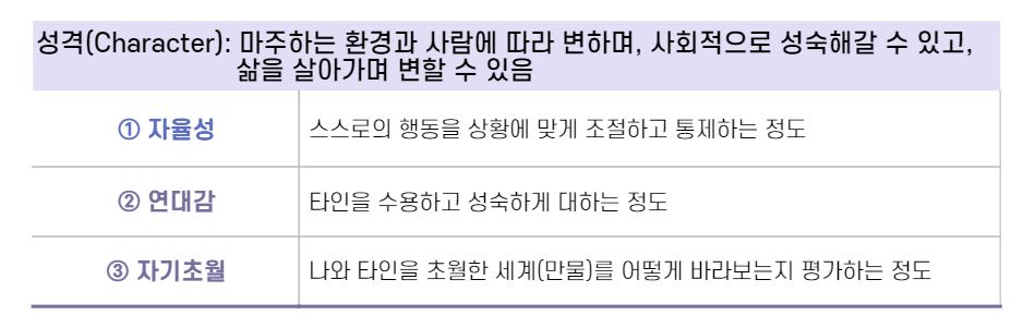 기질적으로 자극 추구가 낮고 위험회피가 높더라도, 자기 스스로를 지휘하고 조절할 수 있는 자율성이 높은 아이라면 충분한 탐색의 시간을 거쳐 '안전하다고 느끼는 순간'이 오면, 당신의 자녀는 아이들과 놀이터에서 놀기를 선택할 것입니다. 이 글을 읽고 계신 어머니라면, 아이에게 갑작스럽게 만남의 장을 제공하고 노출시키기보다, 충분히 스스로 탐색 시간을 갖도록 인내해주세요. 어머니가 하셔야 할 진짜 교육은, 용기 내어 친구들과 어울리기를 선택한 아이에게 어떻게 하면 친구를 수용하고 배려하고 성숙하게 대할지(연대감)에 대한 조언을 해주시는 것입니다. 자기 초월의 의미가 생소하실 수도 있을 텐데요, 이는 종교가 있는 사람이라면 비종교인 보다 높을 수 있다고 합니다. 만약 자기 초월이 매우 낮다면, 이성적이고 비판적이며 논리적인 성향을 가지고 있다고 해석할 수 있습니다.